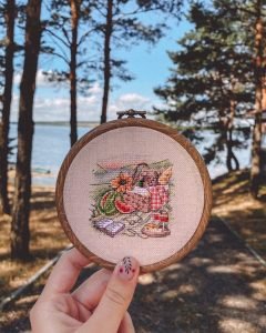 - pdf-файлу (у ньому перелік ниток DMC, рекомендації та пояснення, кольорова та чорно-біла схеми);